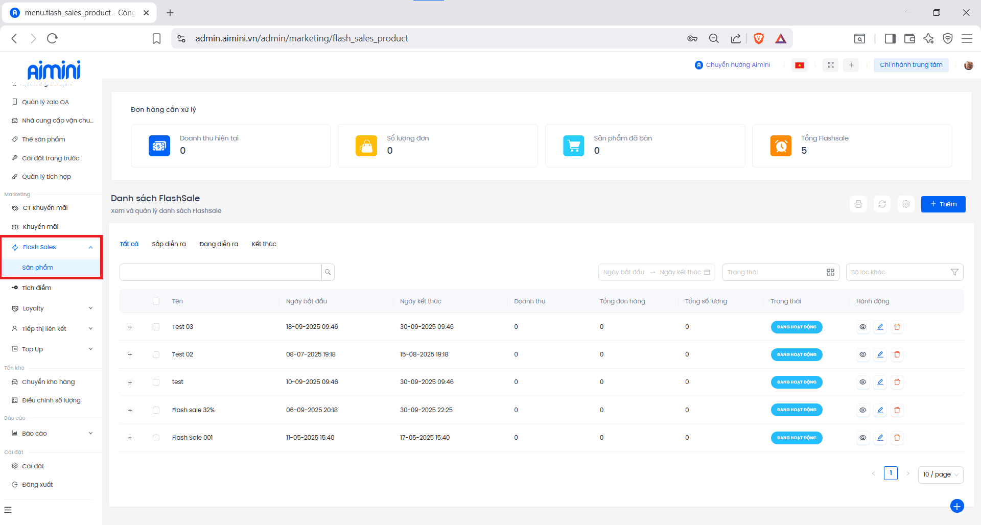 Hướng dẫn tạo, quản lý và theo dõi doanh thu các chương trình flash sale sản phẩm.