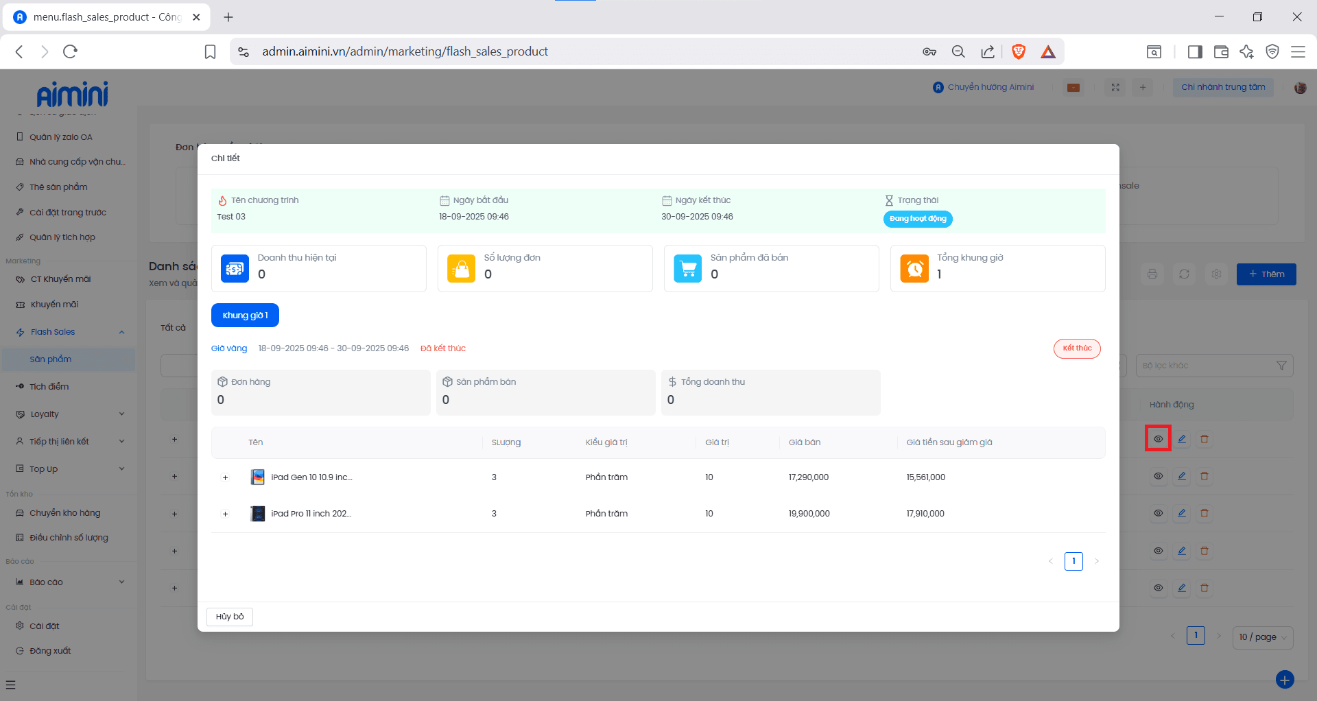Xem chi tiết các chương trình flash sale đang - đã hoạt động bằng cách chọn icon