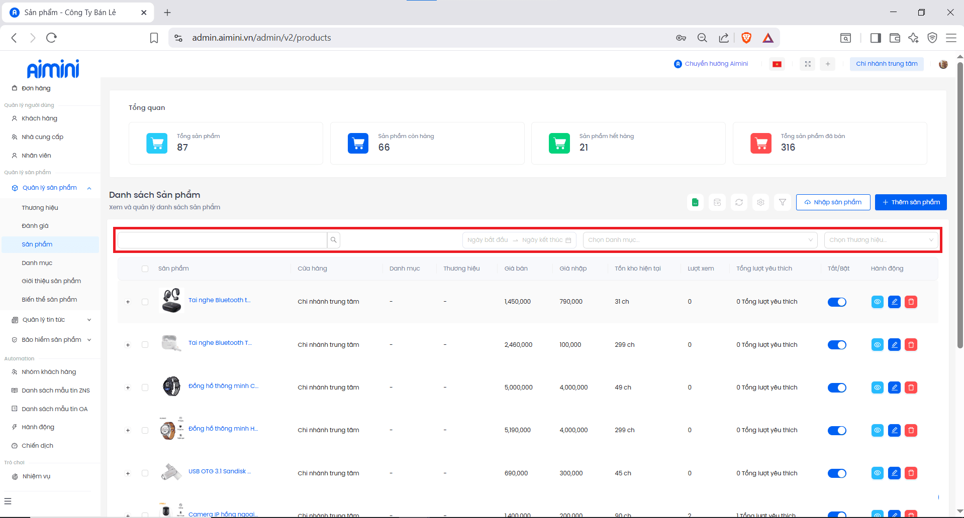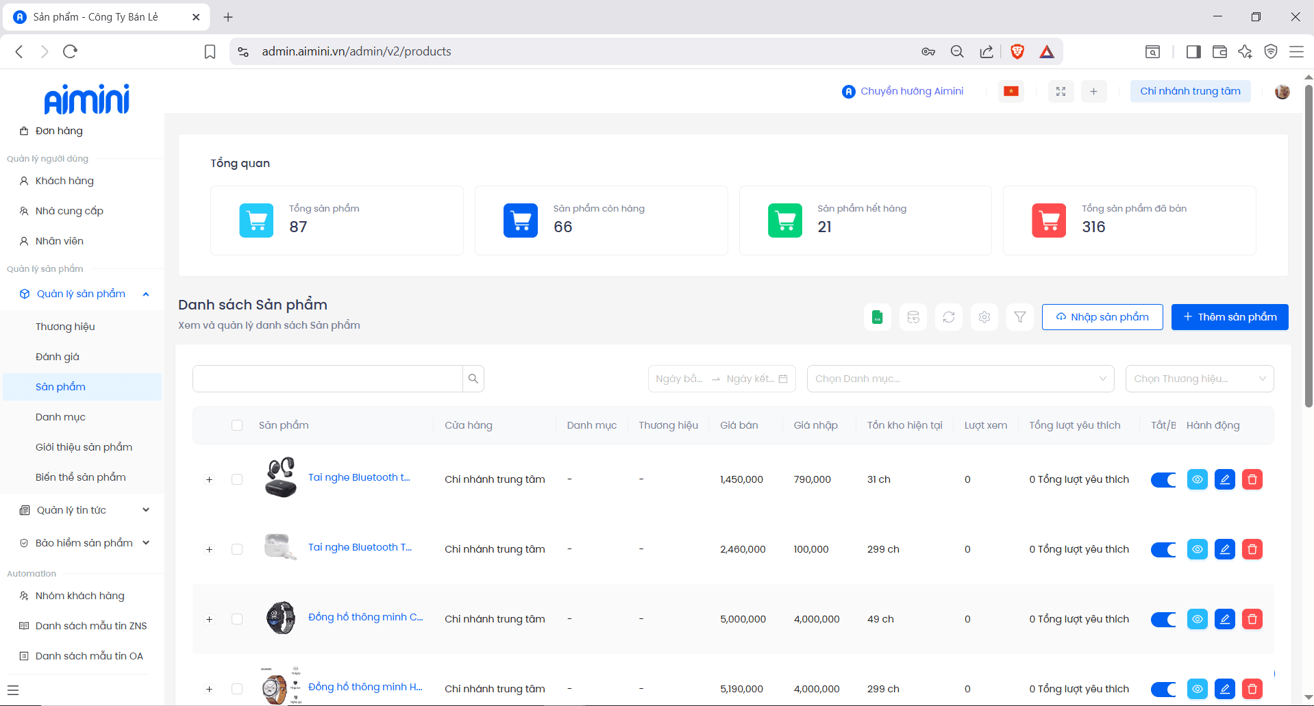 Hướng dẫn quản lý, thêm mới, tìm kiếm và chỉnh sửa sản phẩm trên hệ thống.